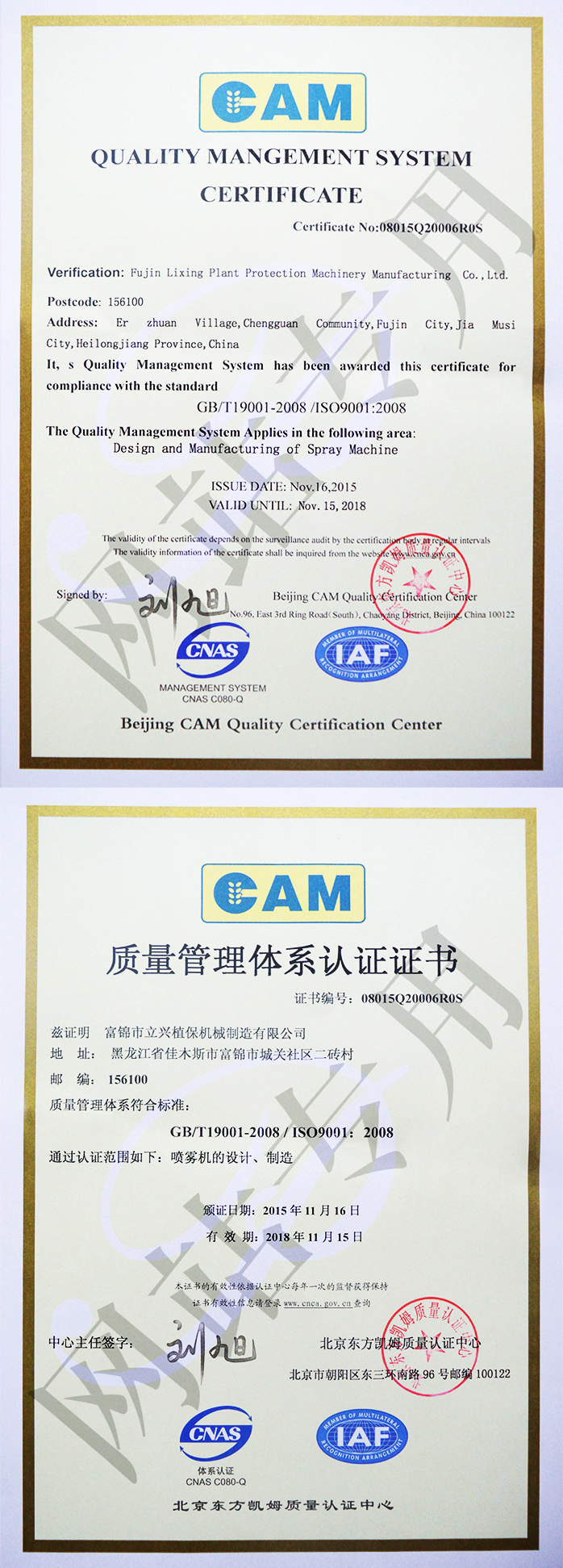 ISO9001質量管理體系認證證書