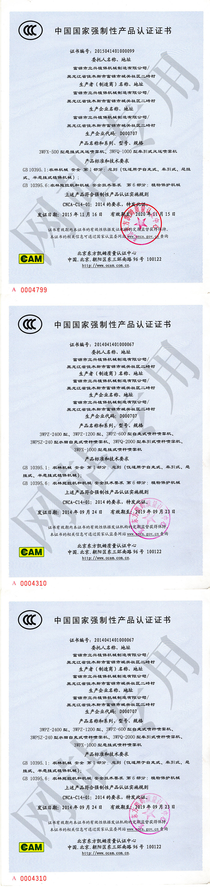 CCC中國國家強制性認證證書